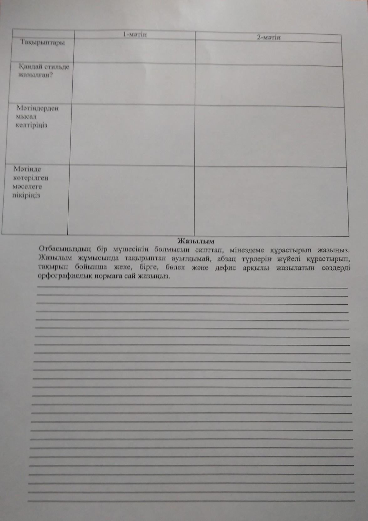 Матiндердi озaра салыстырыныз. Екi матiннiн тiлдiк колданыстарынан кандай ерекшеліктердi байкадыныз? Матiндердiн ойына катысты пiкiрiнiз бiлдiрiнiз.