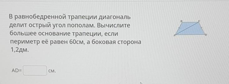 треугольник ABC - равнобедренный, тогда AB=BC=1,2 дм= 12 см
