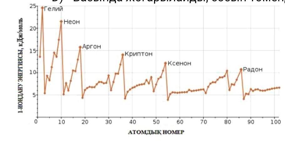 Используя график, покажите, как значение энергии ионизации изменяется слева направо с течением времени.