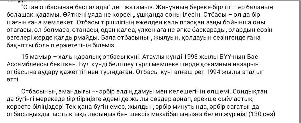 3. Берілген сұрақтарға мәтін мазмұны бойынша жауап беріңіз. a) Отбасы күні мерекесін бекітуге не себеп болды? [1] Б) Мереке кунi жақын жандарға деген құрметті қалай көрсетуге болады? Оқылым