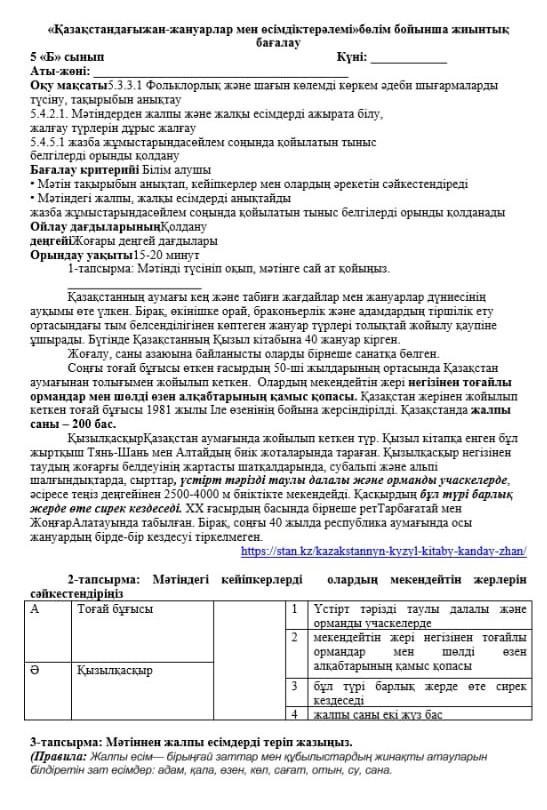 Ответ:1- тапсырма тақырыбы Қазақстанның қызыл кітабы