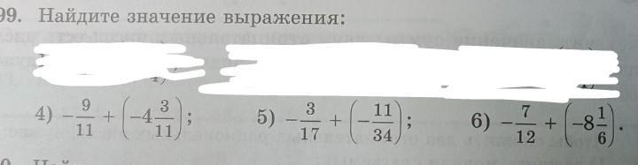 4) -9/11+(-4 3/11)= -(9/11+4 3/11)= -4 12/11= -5 1/11