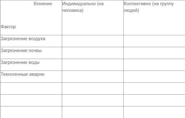 Добавив в вашу таблицу ещё 3 фактора, которые могут оказывать воздействие на людей и индивидуально на человека.