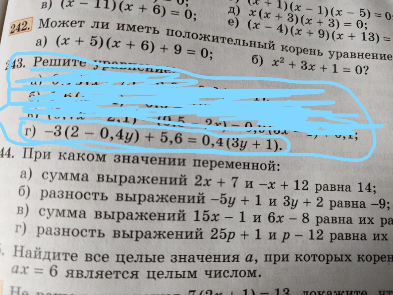 -3(2-0,4у)+5,6=0,4(3у+1)