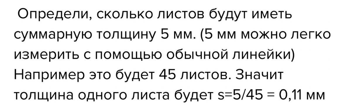 СРОЧНО!! Вы приобрели в магазине пачку тонкой бумаги. Предположите способя как можно определить толщину одного листа, если в вашем распоряжении есть обычная ученическая линейка. Толщина листа заметно меньше, чем 1 мм..