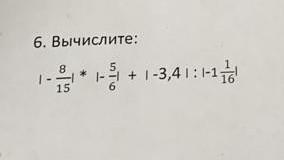 | - 8/15 | * | - 5/6 | + | -3,4 | / | - 1 1/16 | = 8/15 * 5/6 + 3,4 / 11/16 = 4/9 + 1 1/11 = 44/99 + 1 9/99 = 1 53/99