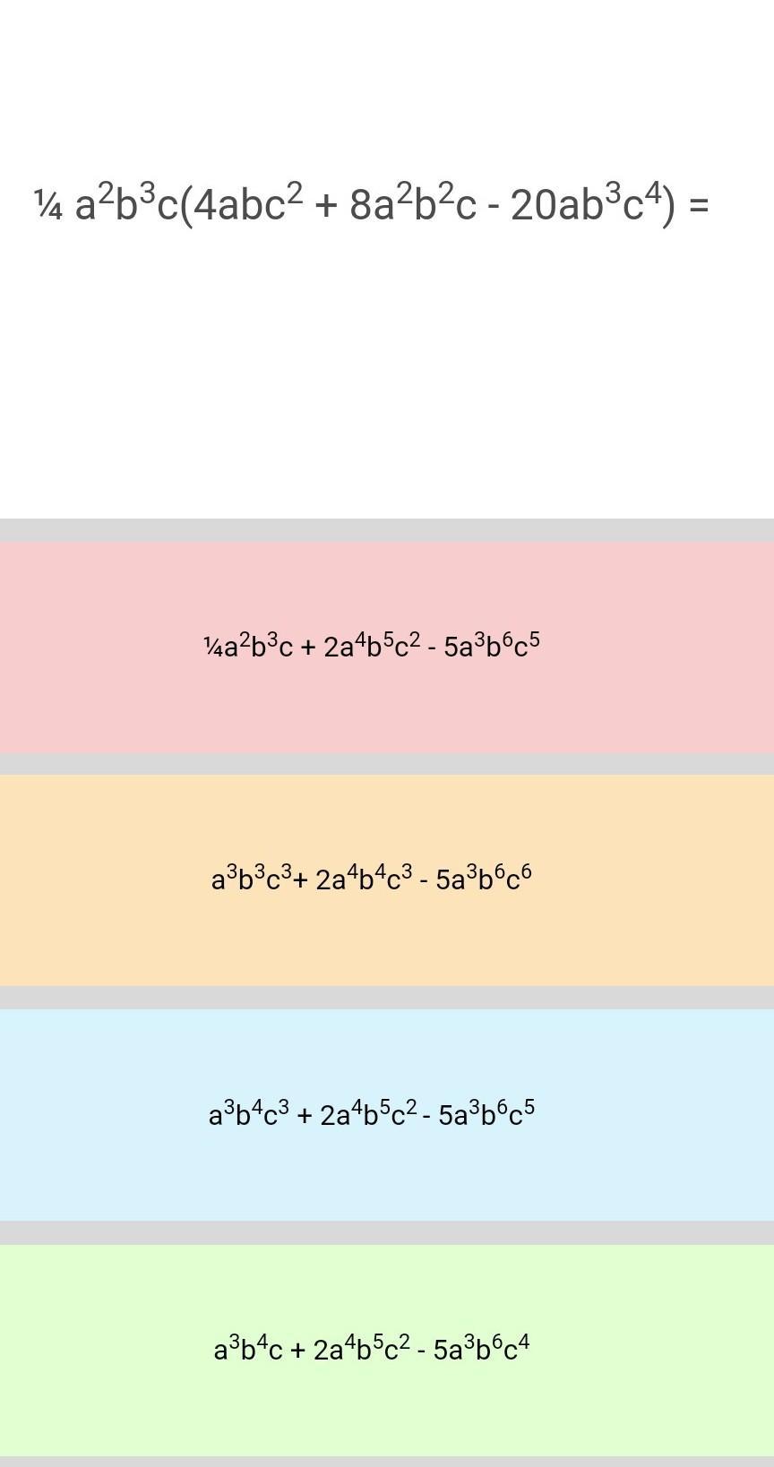 2)a2b3c*(0.25+2a2b2c-5ab3c4)