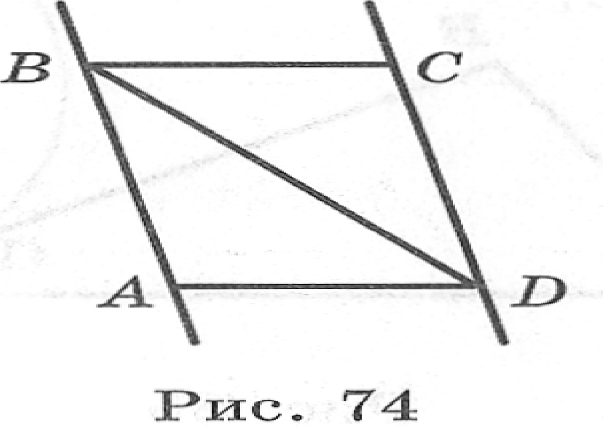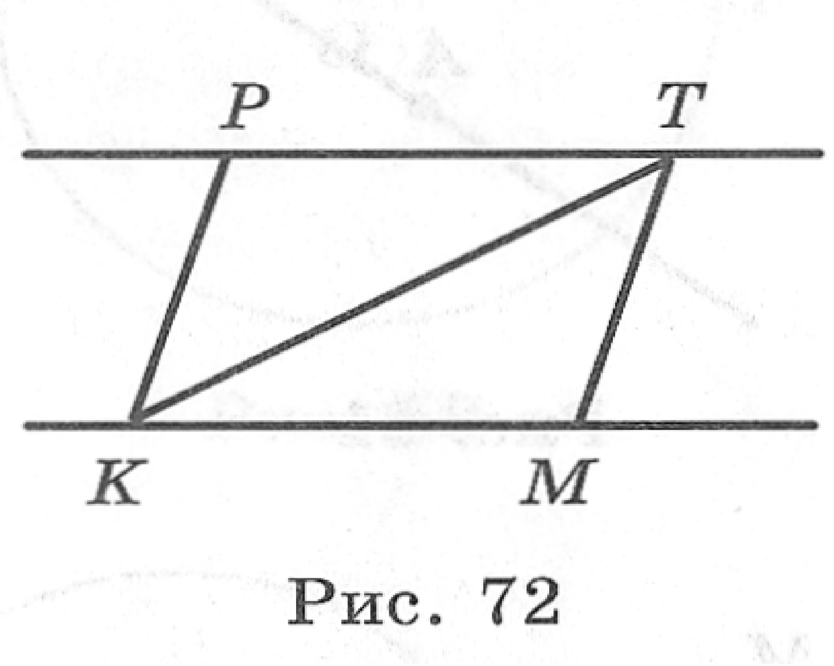 1. На рисунке 72 РТ = КМ, РК = ТМ. Докажите, что прямые РТ и КМ параллельны.2. На рисунке 74 АВ = CD, ВС = AD. Докажите, что прямые АВ и CD параллельны. . Параллельны ли прямые а и b, b и с, а и с, изображенное на рисунке 75?