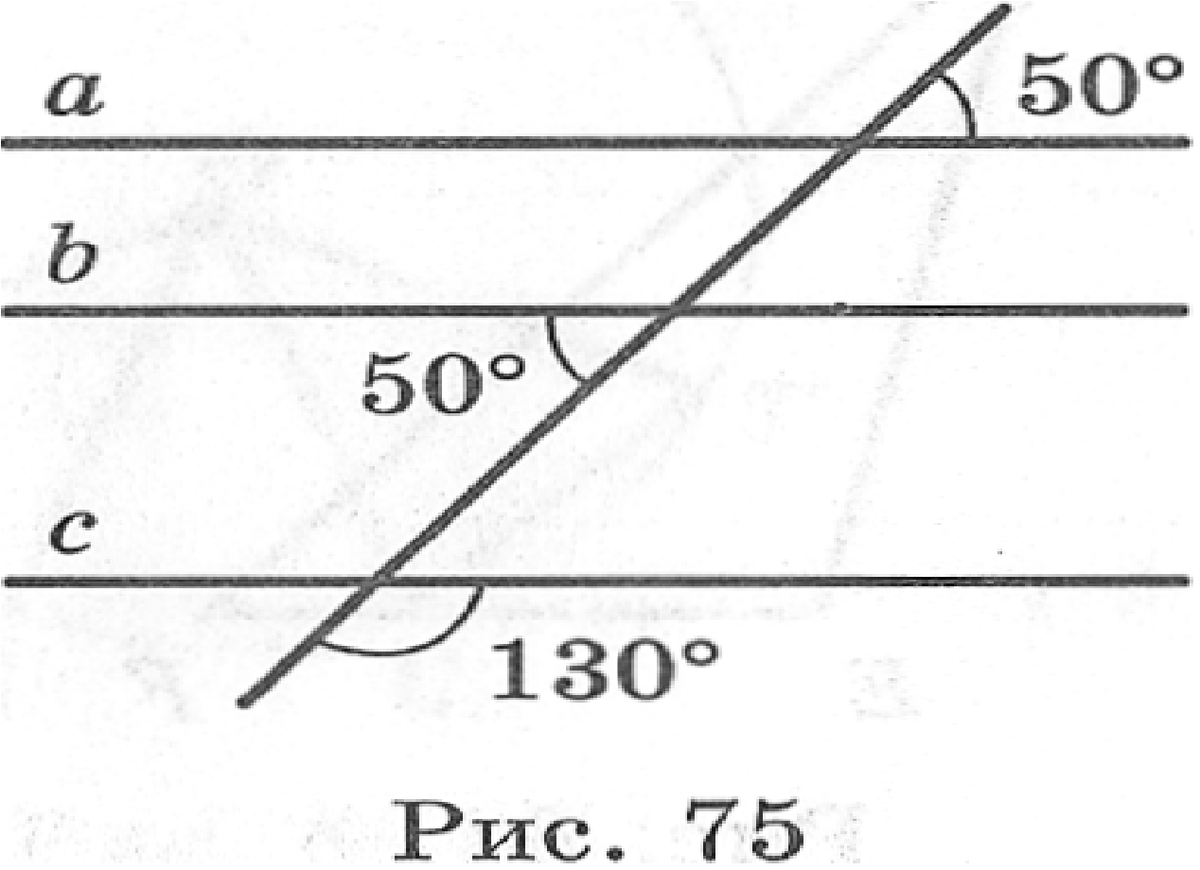 3. Все три прямые параллельны друг другу, так как образуют с секущей равные - 50 или 130 градусов - соответственные углы.