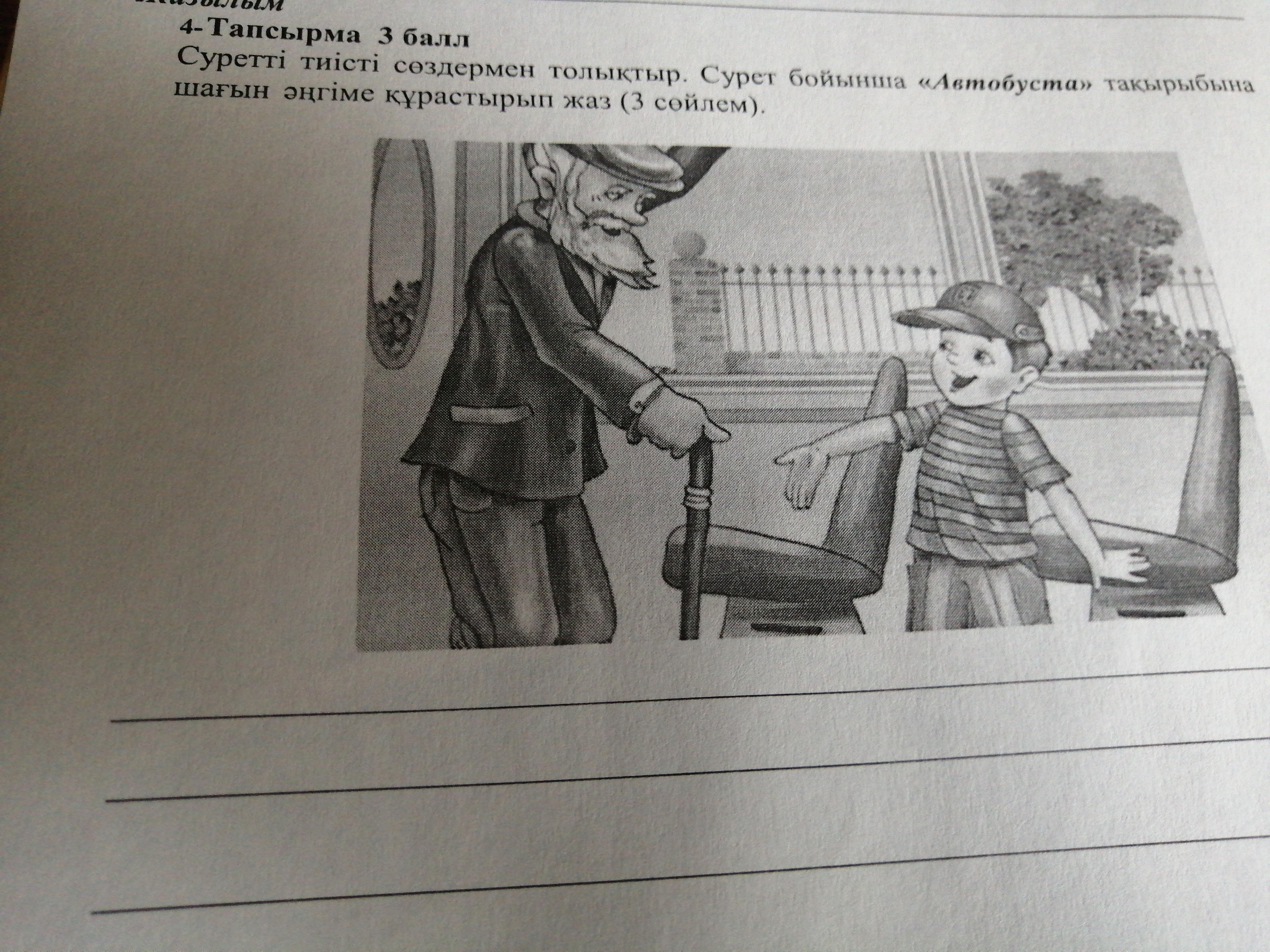 Мен бүгін автобуста отырып , автобусқа бір ата кірді . Автобуста бос орын жоқ екен . Сол кезде мен орнымнан тұрып :