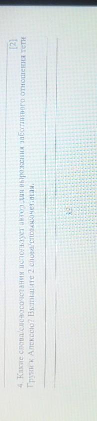 4. Какие слова словосочетания использует и нитор для квыражения заботливого отношения тети Груни к Алексею? Выпишите 2 слова/словосочетания.