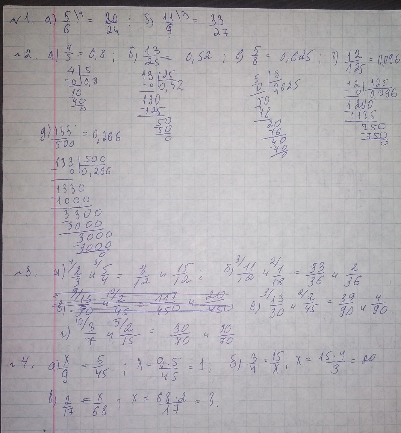 1.а) числитель 20, знаменатель 24 б) числитель 33 знаменатель 27