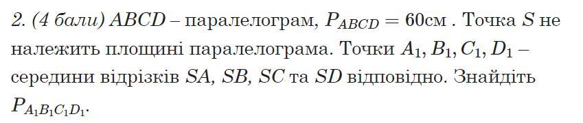 СРОЧНО! ABCD – паралелограм,Pabcd=60см . Точка S не належить площині паралелограма. ТочкиA1 B1 C1 D1 – середини відрізків SA, SB, SC та SD відповідно. Знайдіть .
