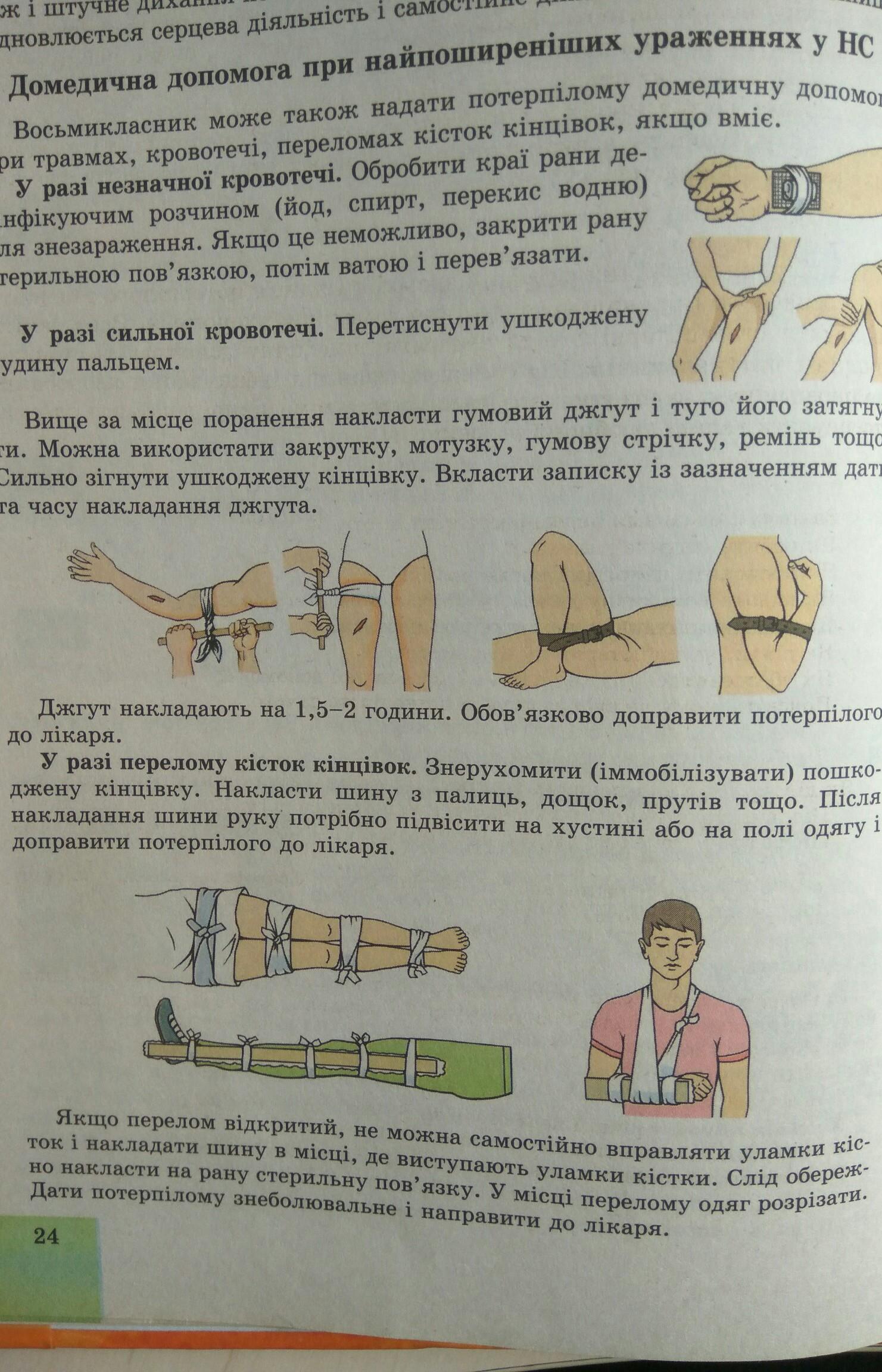1. накласти на рану чисту, стерильну серветку та натиснути безпосередньо на рану;