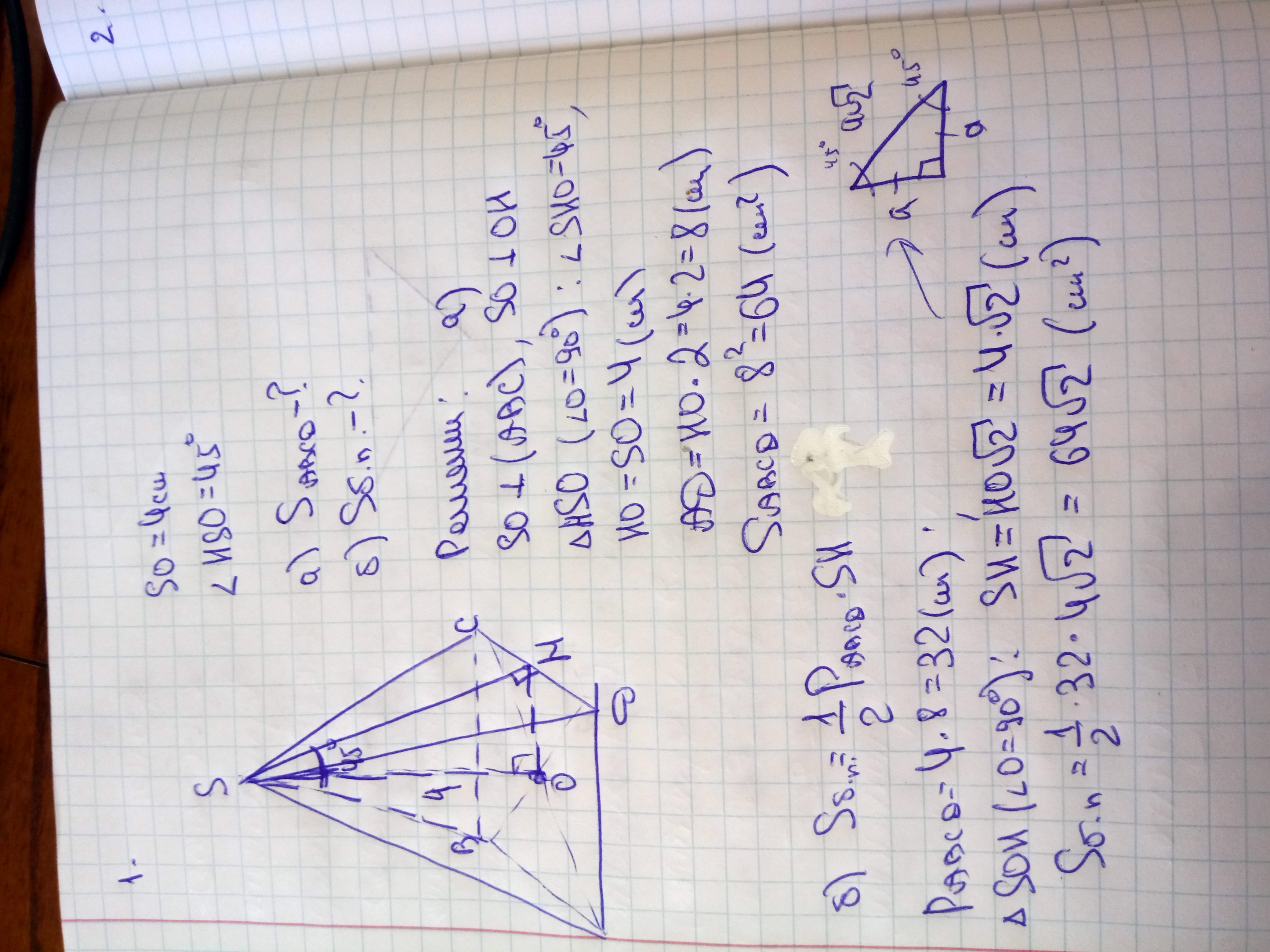 1. Высота правильной четырехугольной пирамиды равна 4 см, а ее апофема образует с высотой угол 45 °. найдите: