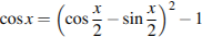 cosx=cos^2(x/2)-2sin(x/2)cos(x/2)+sin^2(x/2)-1; cosx=1-sinx-1; cosx=-sinx; tgx=-1; x=- pi/4+pi*k; k-Z