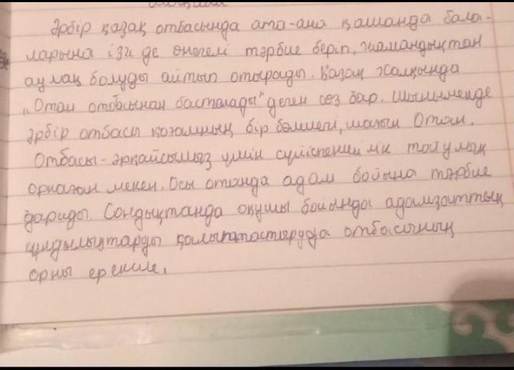 2. Берілген ут тақырыптың бірін таңдап, шағын мәтін құраңыз. Сөздерді орфографиялык нормаға сай жазып, қосымшаларды дұрыс жалғаңыз, жазба ицысыңызда реттік, жинақтық сан есімдерді, сөйлем соңында қойылатын тыныс белгілерді орынды қолданыңыз. 1. Қазіргі қазақ ауылы мен қаланың тыныс-тіршілігі 2. Отан отбасынан басталады 3. Таулар сыры помагитеее