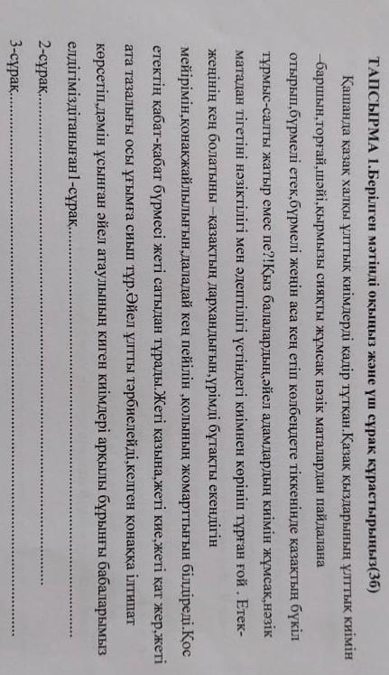 1)Қазақ қыздарының ұлттық кимін қандай матадан жасайды?