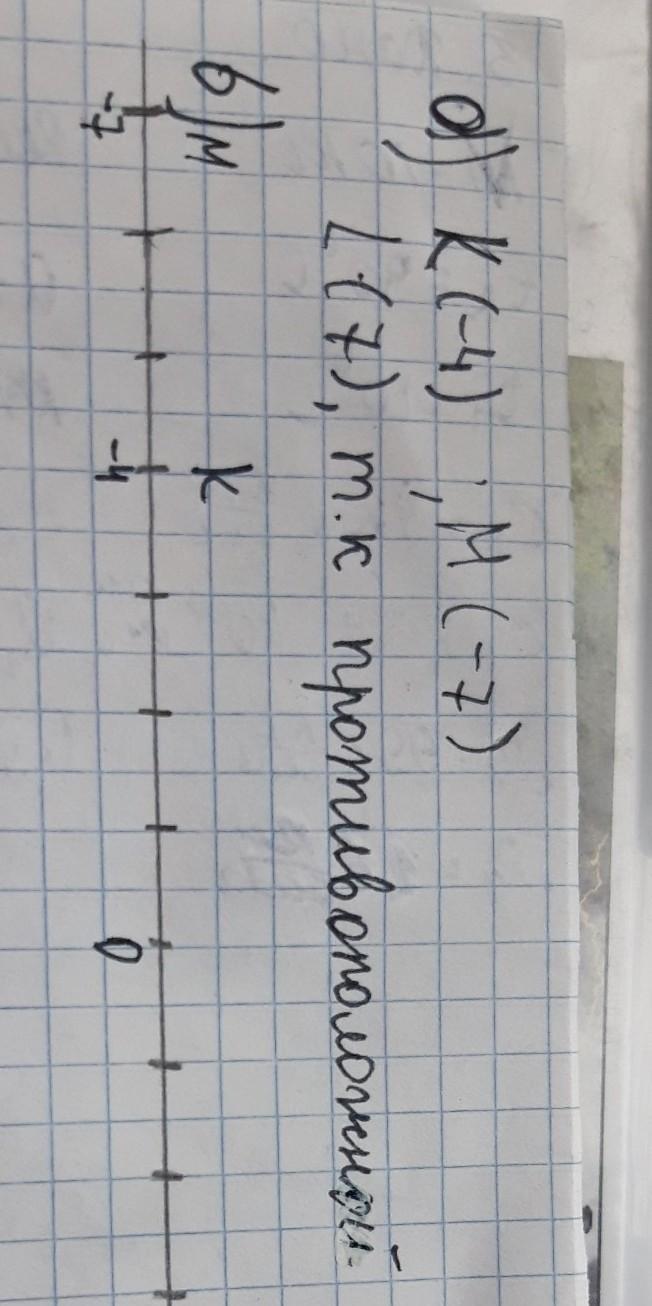 4. Даны точки К) и М-7 а) Найдите координату точно противополоне b) Изобразите точки К. Ми не координатное е найдите расстояние от точки со тоа