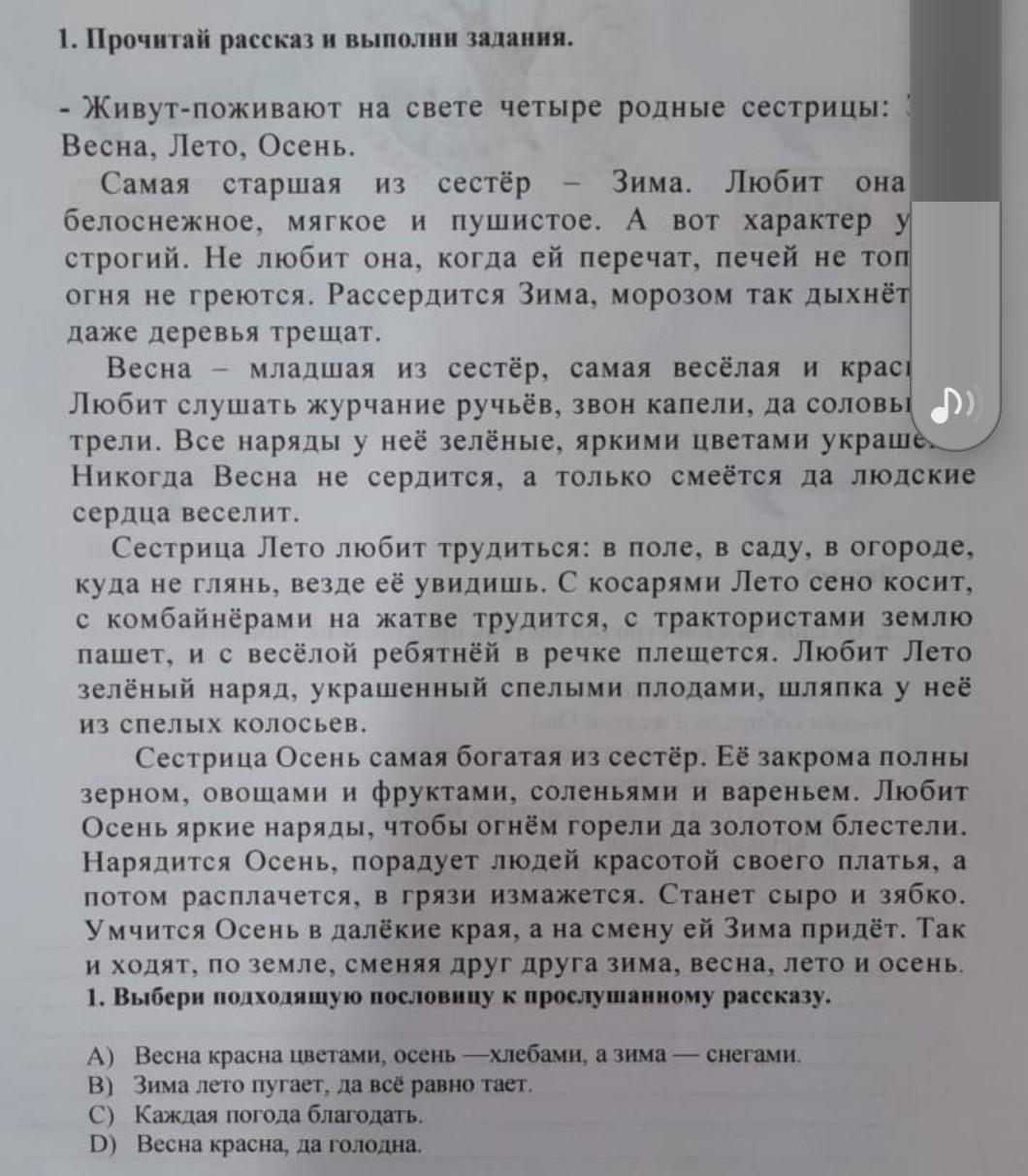 А) Весна красна цветами, осень—хлебами, а зима—снегами.