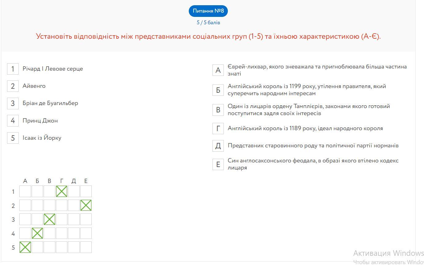 Установіть відповідність між представниками соціальних груп (1-5) та їхньою характеристикою (А-Є).