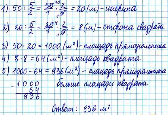 1) 50 : 5 * 2 = 20 (м) - ширина прямоугольника