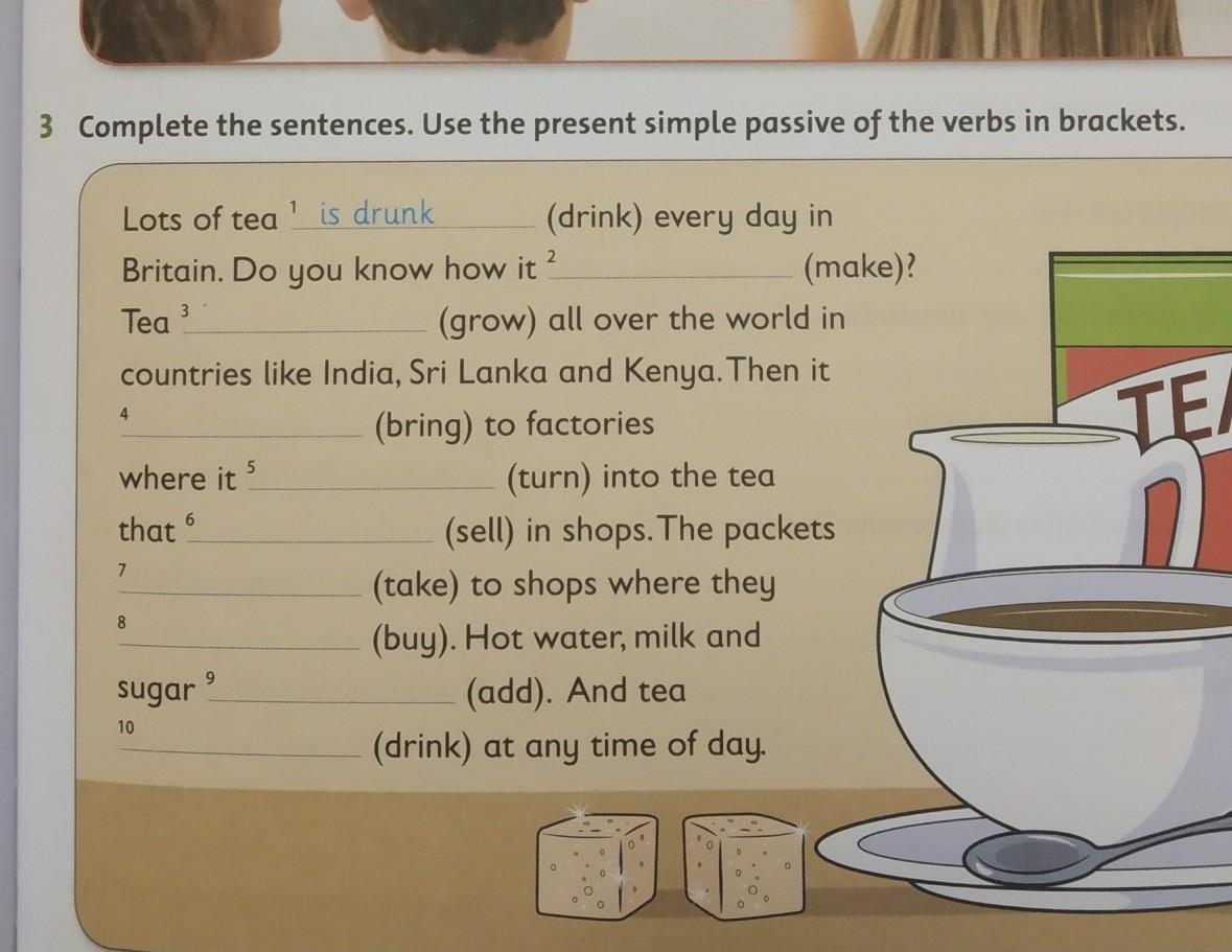 Do you know how it is made? Tea is grown all over the world in countries like India, Sri Lanka and Kenya. Then it is brought to factories where it is turned into the tea that is sold in shops. The packets are taken to shops where they are bought. Hot water, milk and sugar are added. And tea is drunk at any time of day.