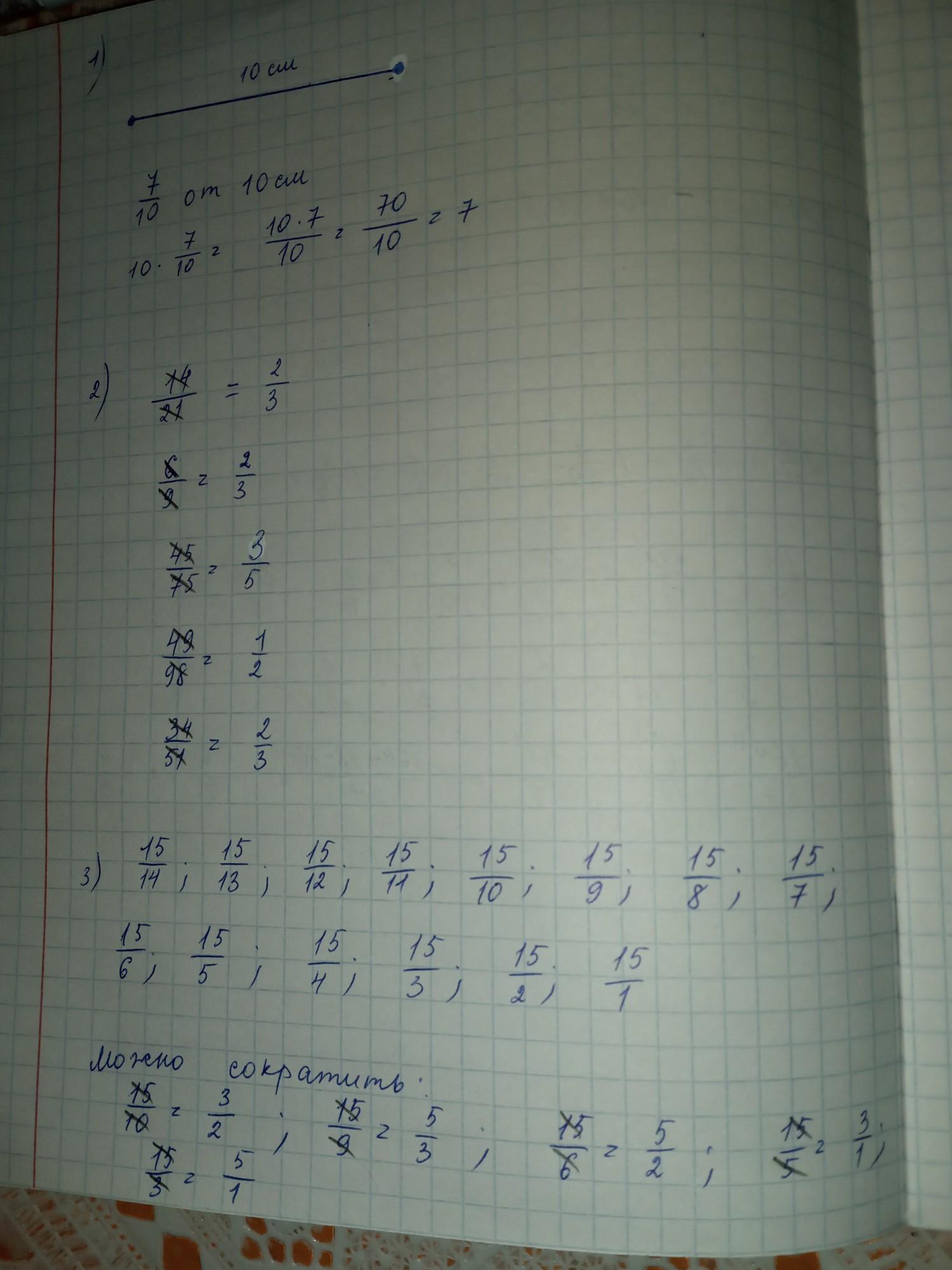 1) 7/10 от 10 см = 10÷10×7= 7 см