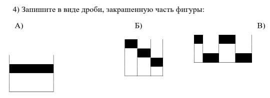 Б) 1 полоска закрашенная, 4 всего (1/4часть закрашенная)