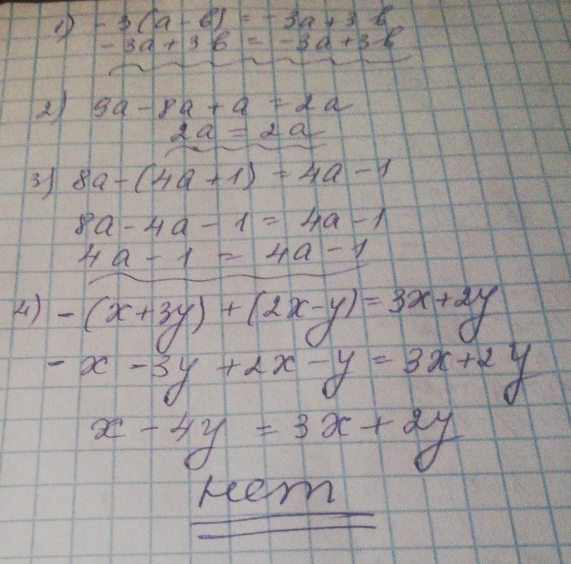 Г) - (х + Зу) + (2х - у) = 3х + 2у.