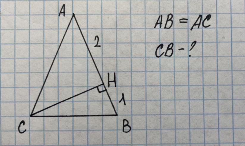 по теореме Пифагора в прямоугольном ∆AHC: AH²+HC²=AC²; HC²=3²-2²=9-4=5