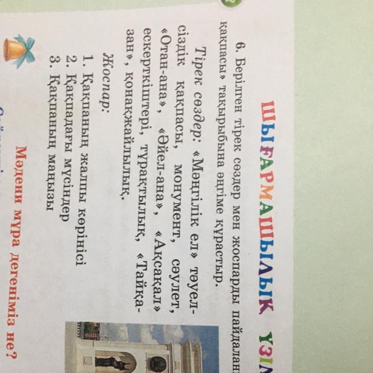 Мәңгілік ел тәуелсіздік қақпасы- әлемдегі санаулы қалаларға тән ерекше сәулеттік-мануметалды туынды.Мәңгілік ел қақпасының оң жақ қапталында Ақсақал мүсіні орналасқан,ал қақпаның сол жақ қапталында от иесі-Әйел ананың рельефті мүсіні орналасқан.Ана бейнесі қазақ ұлты үшін Отан ана,Жер ана,ана тілі сынды киелі ұлттық ұғымдарына ұласады.Нысананың екі жағында Тайқазан орналасқан.Тайқазан тыныштық пен тоқшылықтың,бірегей көңіл мен қонақжай пейілдің терең ұғымын білдіреді және Мәңгілік ел қақпасының маңызы өте көп.Себебі ол мемлекет пен ұлттық уақытқа тәуелсіз киелі қорғаны.