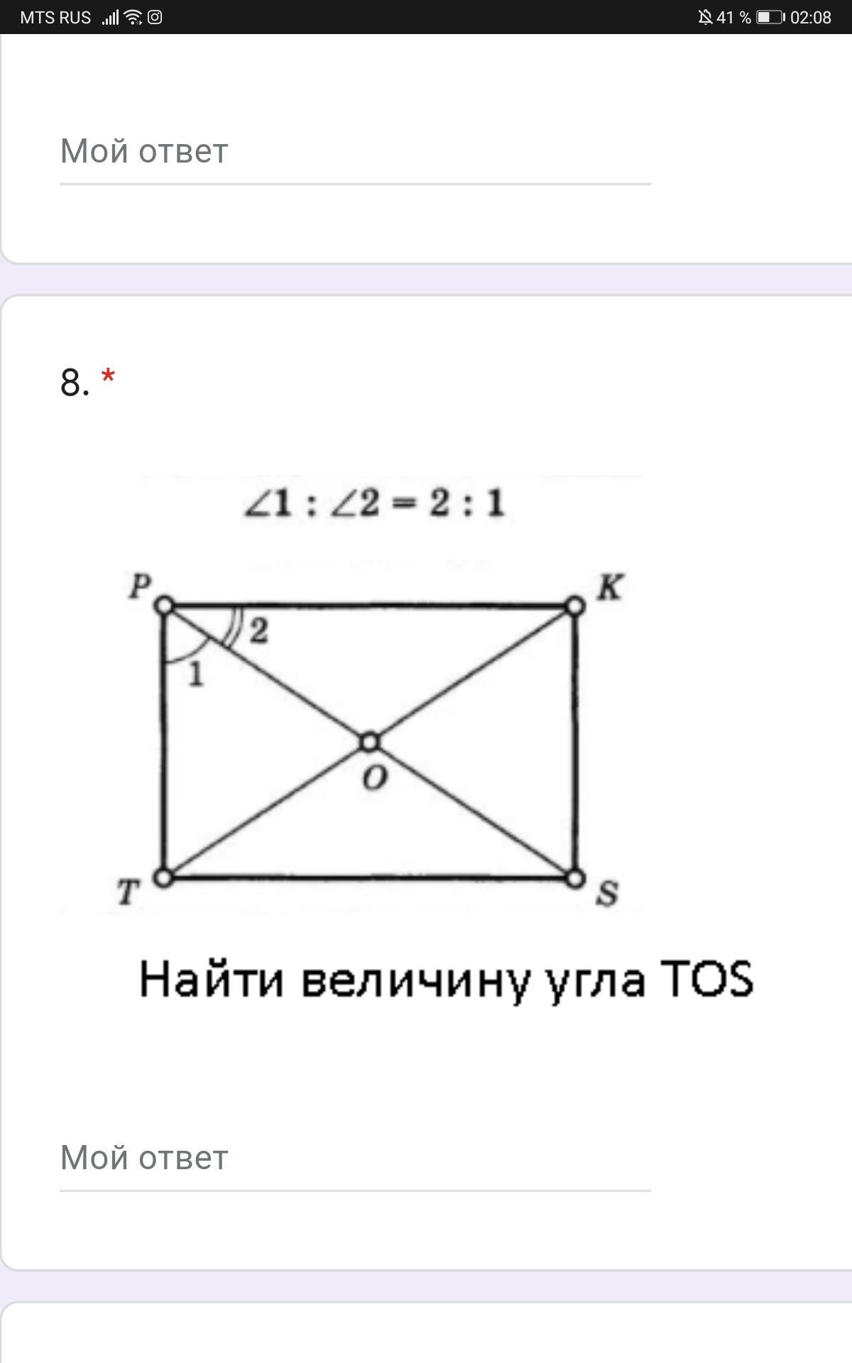 РО=ОК ( по свойству диагоналей : диагонали пр -ка в точке пересечения делятся пополам и диагонали пр-ка равны)