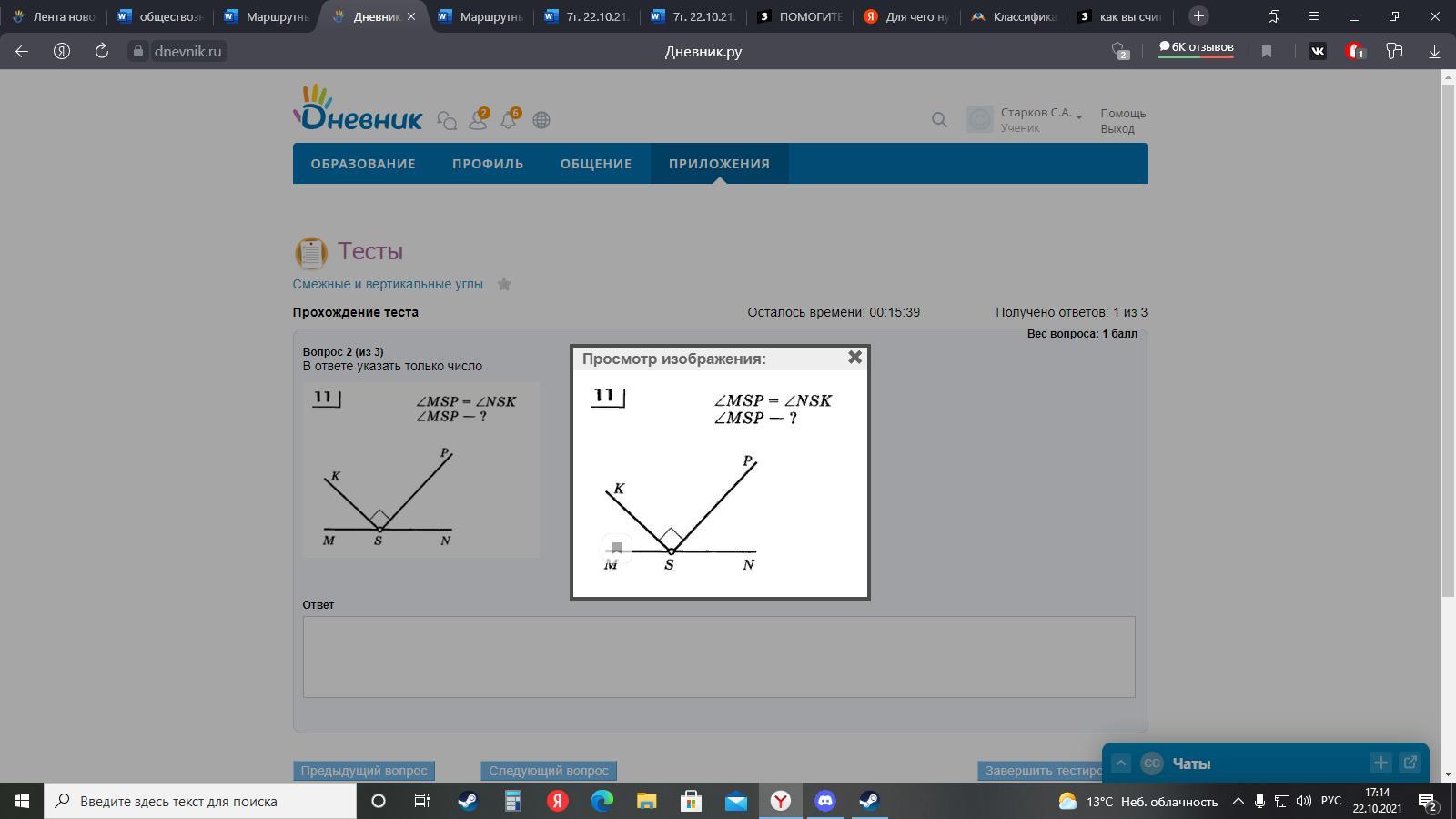 MSN развёрнутый угол. Если MSP = KSN, то и MSK = PSN.