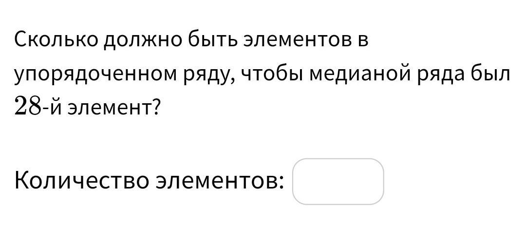 Мединана эт среднее значение, которое как бы в середине ряда. Если медиана 28-е число, то в ряде всего 28+27 = 55 чисел. 27 до, 28-е(1), и ещё 27 после