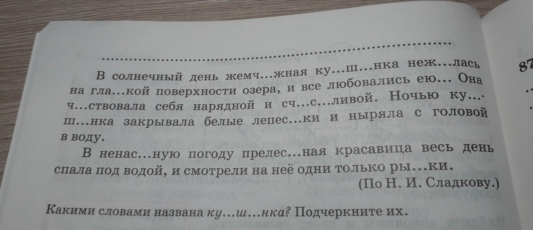 Вставьте пропущенные буквы и озаглавьте текст. Какими словами названа кувшинка? Выпишите их
