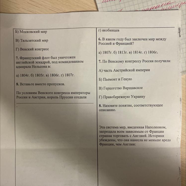 6. Мир между Россией и Францией(Тильзитский) был заключен в 1807 году