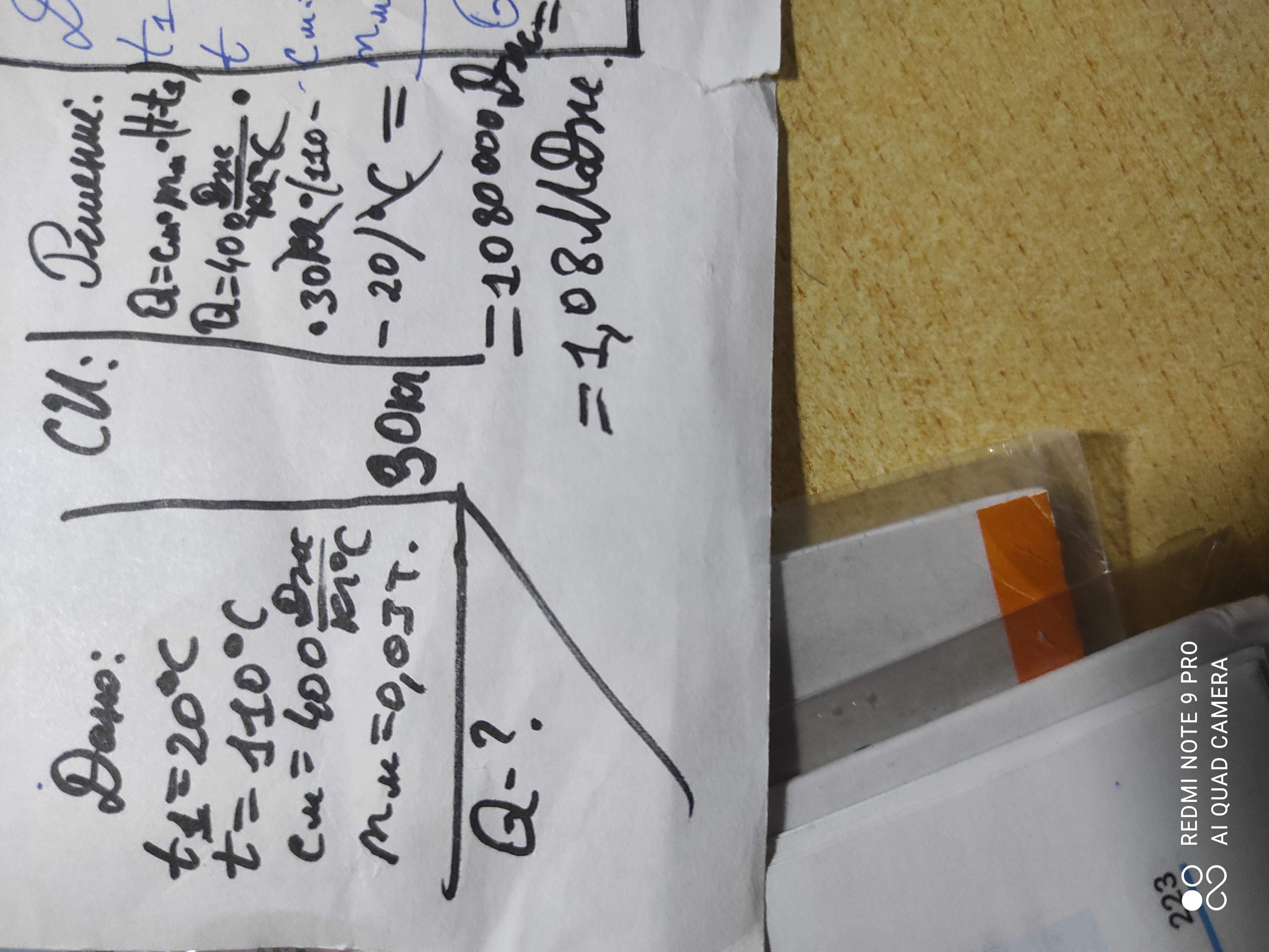 какое количество теплоты необходимо для нагревания от 20 градусов до 110 градусов медной детали массой 0,03 тонны? Помоги пожаловаться