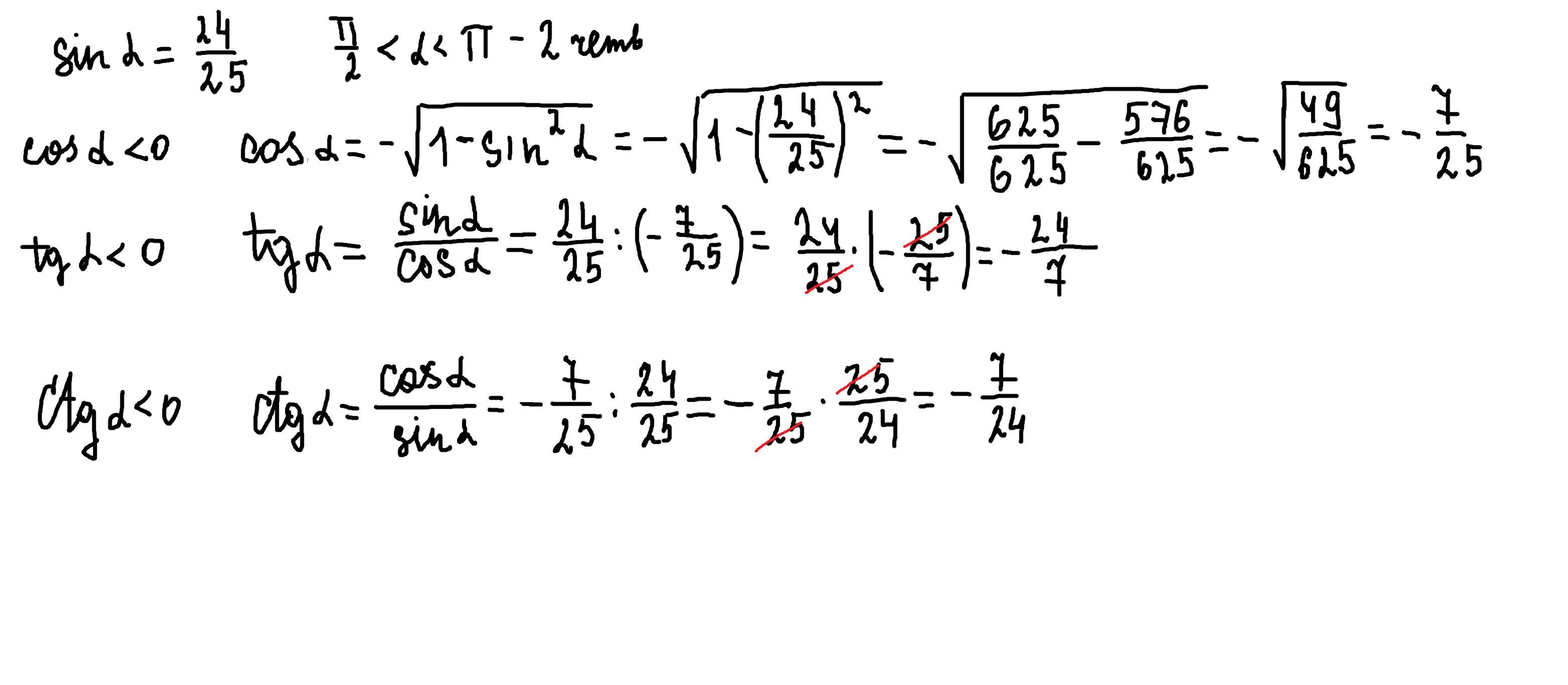 cos a<0 ; tg a< 0; ctg a< 0
