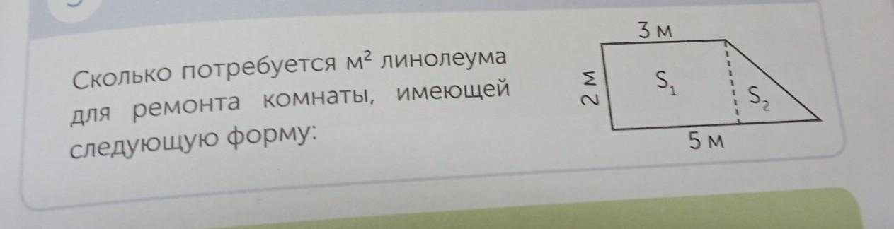 S¹=a•b=3•2=6 a²=5-3=2 S²∆=(2•2): 2=2 S=S¹+S²=6+2=8м²