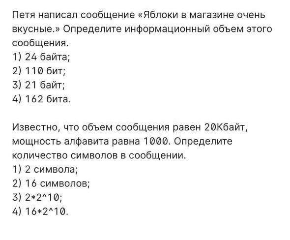 5 - Петя написал сообщение "Яблоки в магазине очень вкусные." Определите информационный обьем этого сообщения.