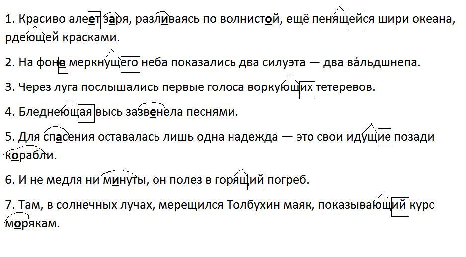 4 109. Спишите, заменяя заключённые в скобках глаголы действительными при- частиями настоящего времени. Согласуйте причастия с выделенными существи- тельными. Обозначьте суффиксы и окончания причастий.