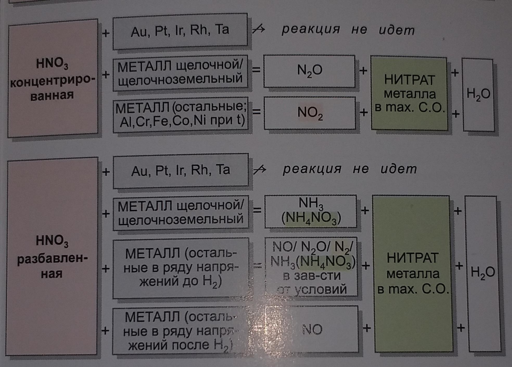 Со всеми из из представленных на рисунке металлов азотная кислота будет реагировать. Напишите самостоятельно реакции азотной кислоты с данными металлами, предварительно уточнив У вашего преподавателя, какой концентрации кислота.
