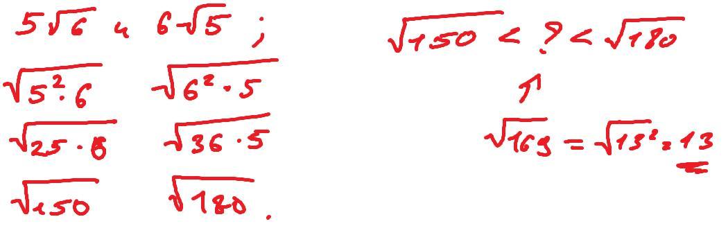 Готовлюсь к ОГЭ, объясните как решить задание: Какое из следующих чисел заключено между числами 5√6 и 6√5