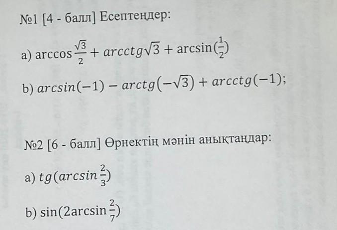 1.б. arcsin(-1)-arctg(-)+arcctg(-1) = -