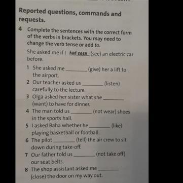1. He asked me to give her a lift to the airport.