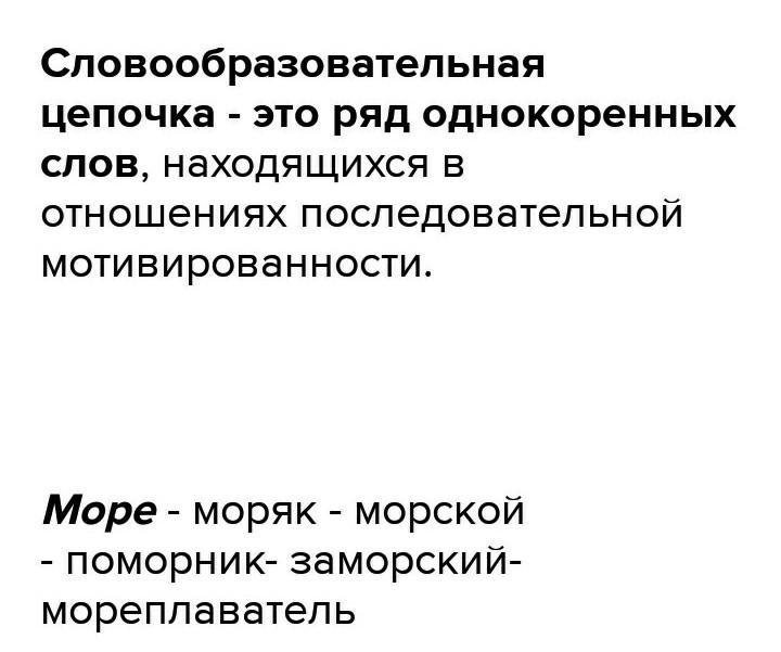 Море - моряк - морячка - морянка - морской - поморник- заморский- мореплаватель - мореплавание - морепродукты.