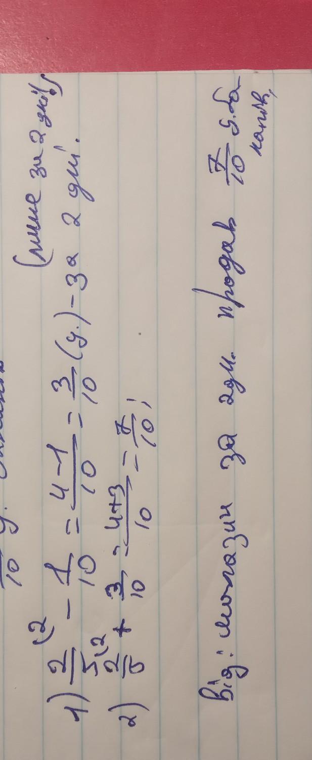 2\5+3\10=4\10+ 3\10=7\10 ц- продали за 2 дня
