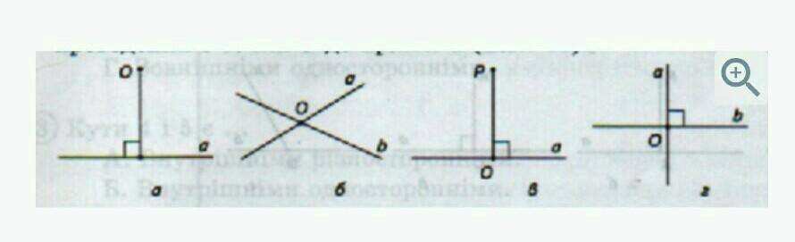 На якому з малюнків (а - г) зображено перпендикуляр, проведений з точки О до прямої а?