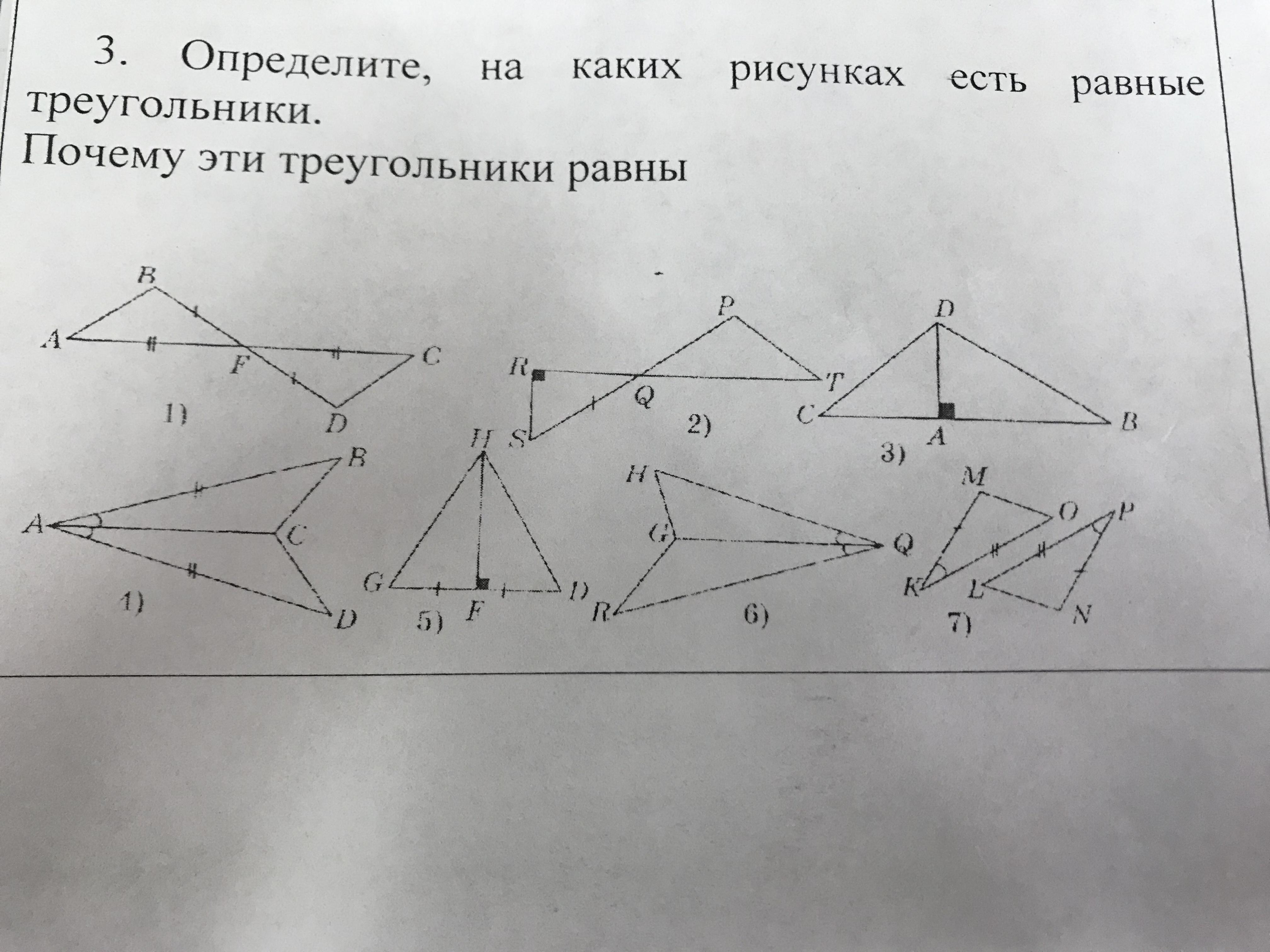 на рисунке равны треугольники с номерами:1, 4, 5, 7
